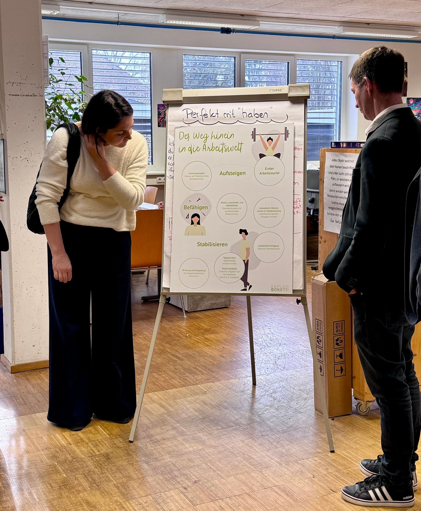 Gemeinsam mit Vertreter:innen des Landtagsklubs der Vorarlberger Volkspartei tauchten wir in die komplexen Themen Arbeitslosigkeit und Arbeitsmarktpolitik ein. Wir diskutierten u.a. die Wahrnehmung langzeitbeschäftigungsloser Menschen, das Matching von Arbeitsuchenden und Personalsuchenden, Arbeitskulturen und -bedingungen, Vermittlungskennzahlen, Altersdiskriminierung, Risiken und Chancen. Wo und warum kommt das System an seine Grenzen und welche Möglichkeiten fehlen?